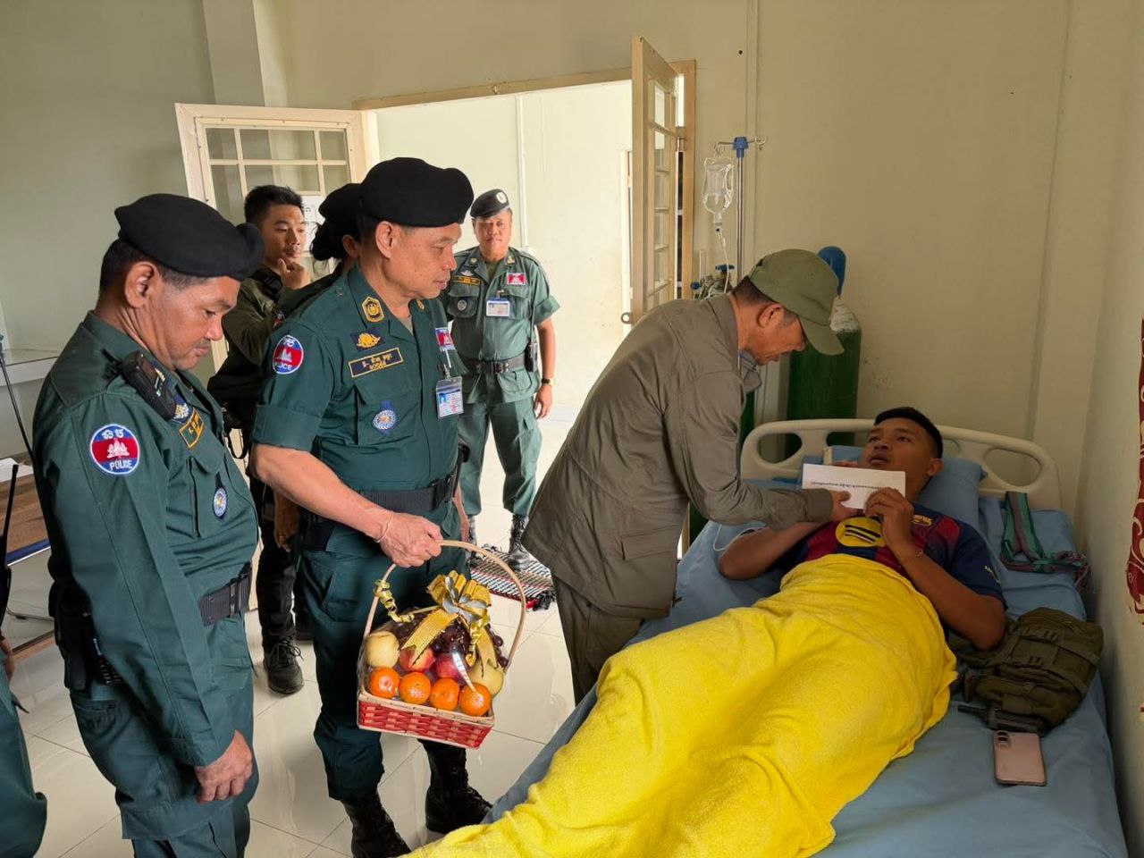 ដោយមានការយកចិត្តទុកដាក់ដ៏ខ្ពង់ខ្ពស់ពី ឯកឧត្ដម នាយឧត្ដមសេនីយ៍ ស ថេត អគ្គស្នងការនគរបាលជាតិ នៅព្រឹកថ្ងៃទី ១៣ ខែ ធ្នូ ឆ្នាំ២០២៥ លោកឧត្ដមសេនីយ៍ទោ សិទ្ធិ ឡោះ ស្នងការនគរបាលខេត្តបន្ទាយមានជ័យ រួមសហការីបានអញ្ជើញនាំយកថវិកា និងកន្ត្រកផ្លែឈើ ជូនដល់កម្លាំងនគរបាល ដែលត្រូវរបួស និងផ្សែងពុល ហើយសំរាកព្យាបាលជំងឺនៅមន្ទីរពេទ្យបង្អែកអូរជ្រៅ ស្រុកអូរជ្រៅ ។