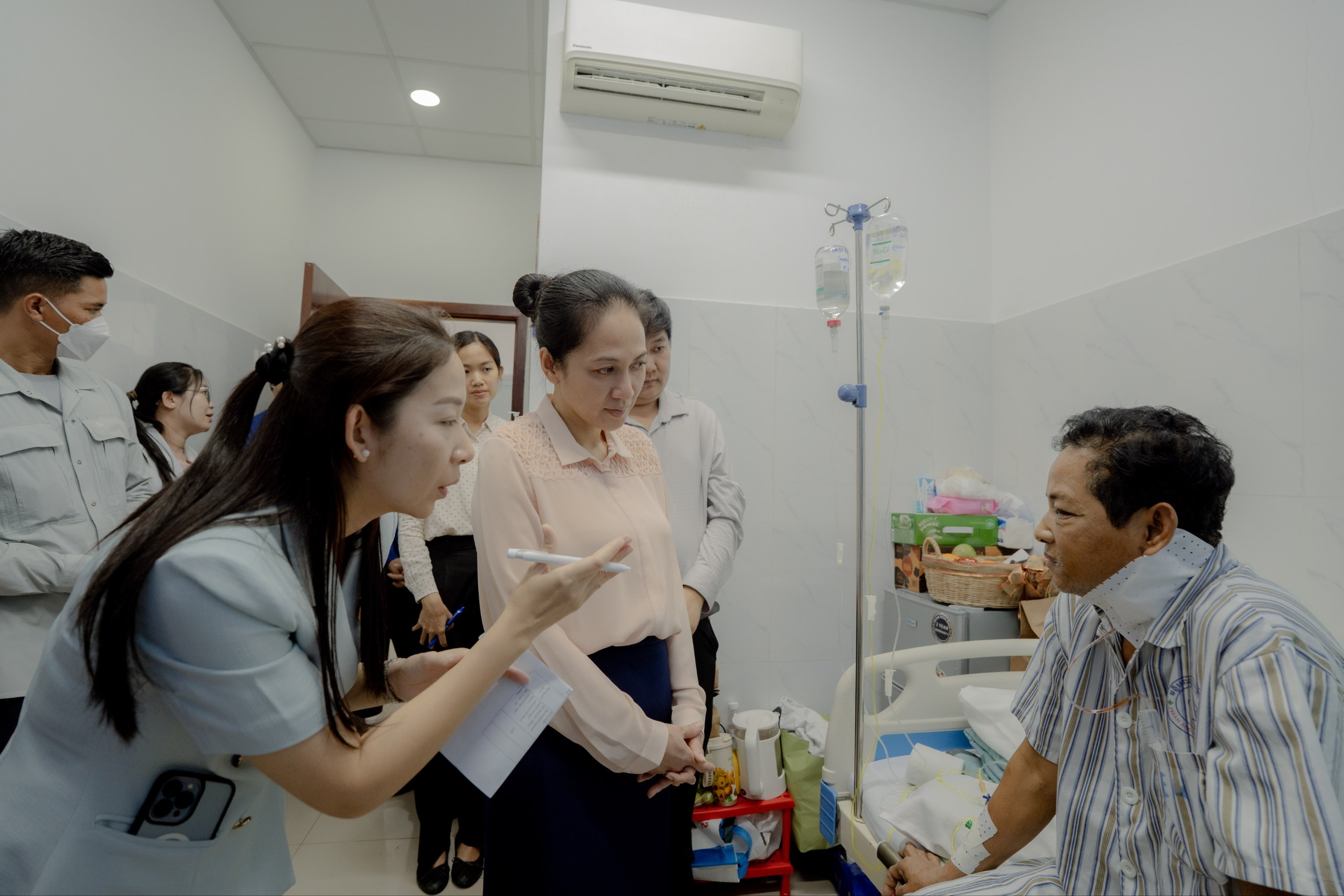 ក្នុងវេលានេះដែរ លោកជំទាវបណ្ឌិត បានពាំនាំប្រសាសន៍ផ្តាំផ្ញេីសួរសុខទុក្ខ និងជូនពរដ៏ខ្ពង់ខ្ពស់បំផុតរបស់ សម្តេចអគ្គមហាសេនាបតីតេជោ ហ៊ុន សែន សម្តេចកិត្តិព្រឹទ្ធបណ្ឌិត ប៊ុន រ៉ានី ហ៊ុនសែន និងសម្តេចមហាបវរធិបតី ហ៊ុន ម៉ាណែត សូមឱ្យវីរកងទ័ពឆាប់ជាសះស្បេីយ និងមានកម្លាំងមាំមួនឡេីងវិញ ។